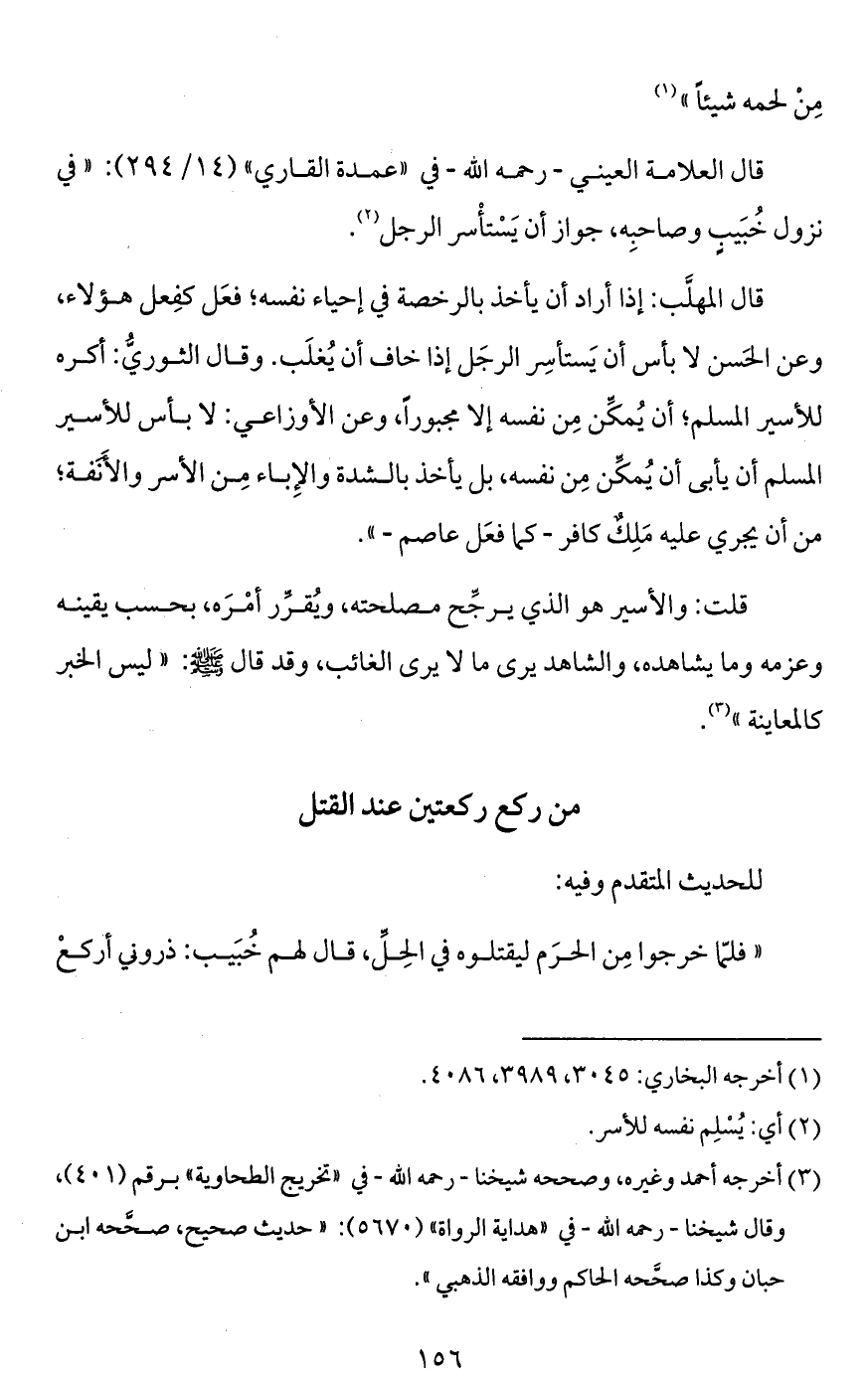 قال العلامة العيني -رحمه الله- في "عمدة القاري" (14/ 294): "في نزول خُبَيبٍ وصاحبِه، جواز أن يَسْتأْسر الرجل (¬2).