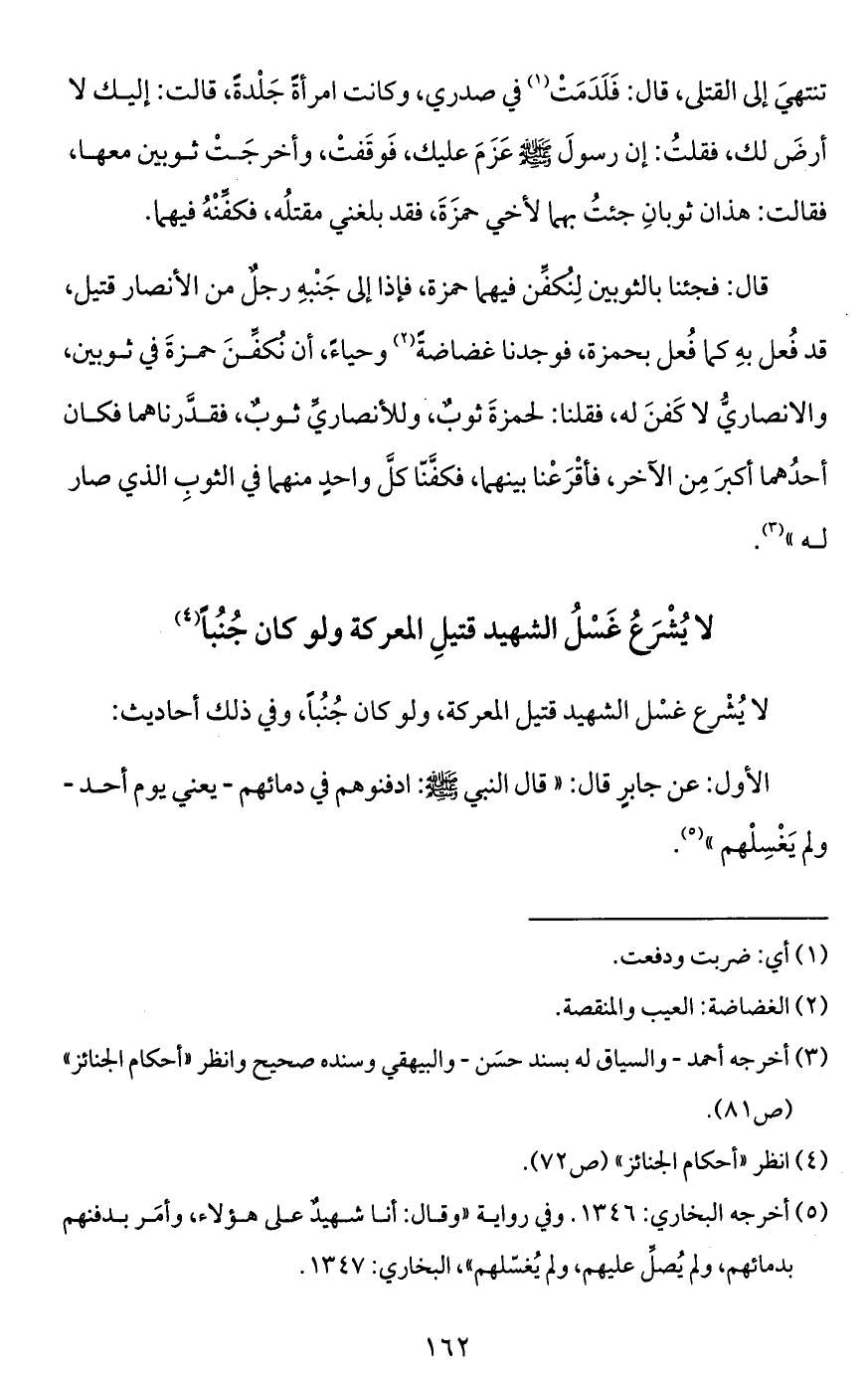 (¬5) أخرجه البخاري: 1346. وفي رواية "وقال: أنا شهيدٌ على هؤلاء، وأمَر بدفنهم بدمائهم، ولم يُصلِّ عليهم، ولم يُغسّلهم"، البخاري: 1347.