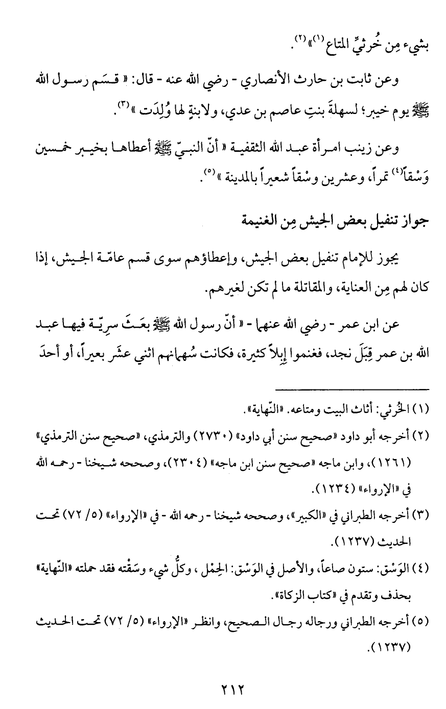 جواز تنفيل بعض الجيش مِن الغنيمة
