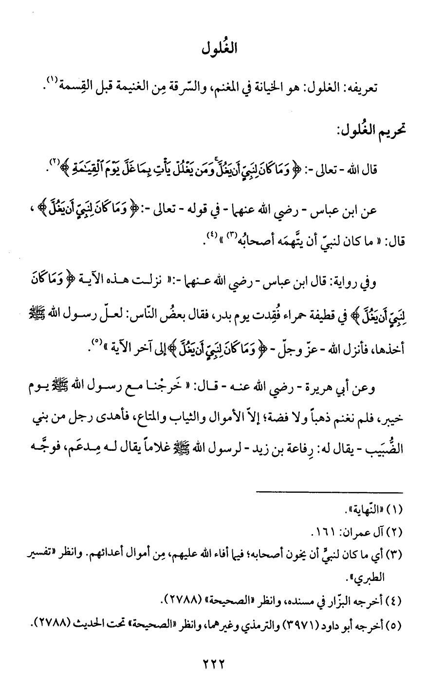 قال الله -تعالى-: {وَمَا كَانَ لِنَبِيٍّ أَنْ يَغُلَّ وَمَنْ يَغْلُلْ يَأْتِ بِمَا غَلَّ يَوْمَ الْقِيَامَةِ} (¬2).