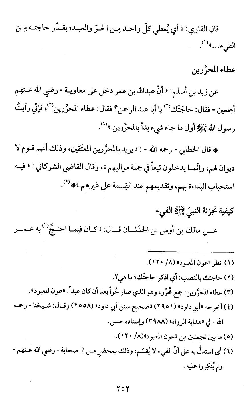 (¬3) عطاء المحرَّرين: جمع مُحرَّر، وهو الذي صار حُراً بعد أن كان عبداً. "عون المعبود".