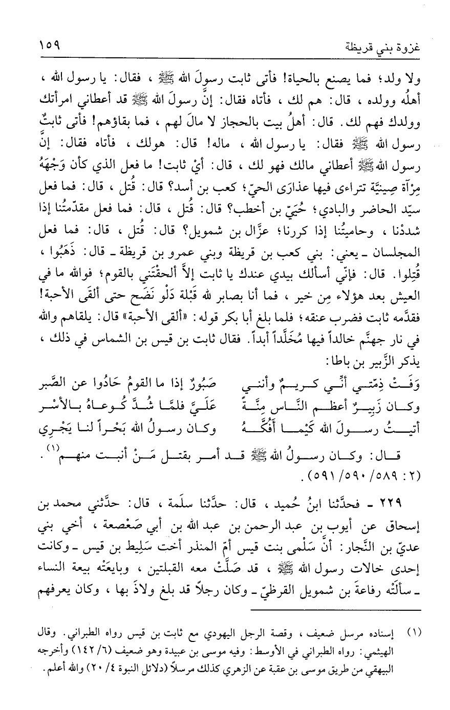 قال: وكان رسولُ الله - صلى الله عليه وسلم - قد أمر بقتل مَنْ أنبت منهم (١). (٢: ٥٨٩/ ٥٩٠ / ٥٩١).
