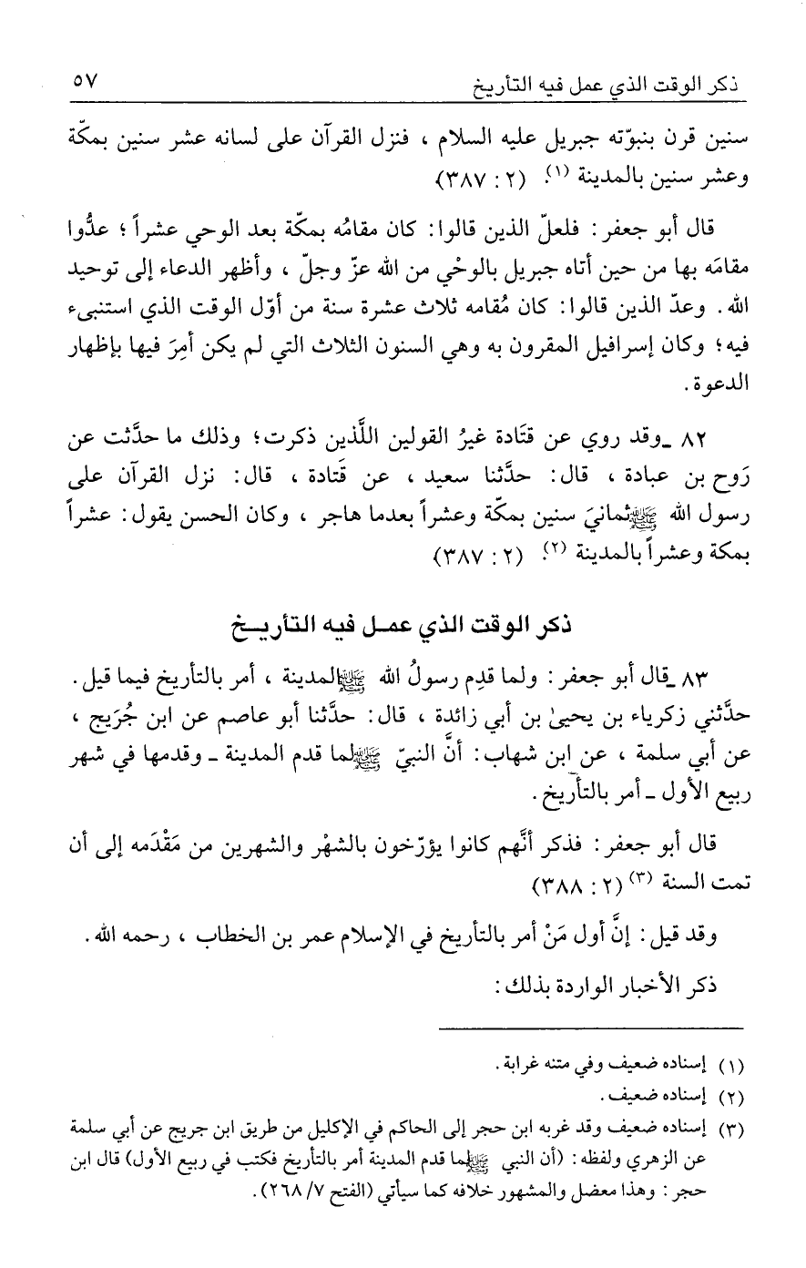 قال أبو جعفر: فذكر أنَّهم كانوا يؤرّخون بالشهْر والشهرين من مَقْدَمه إلى أن تمت السنة (٣) (٢: ٣٨٨)
