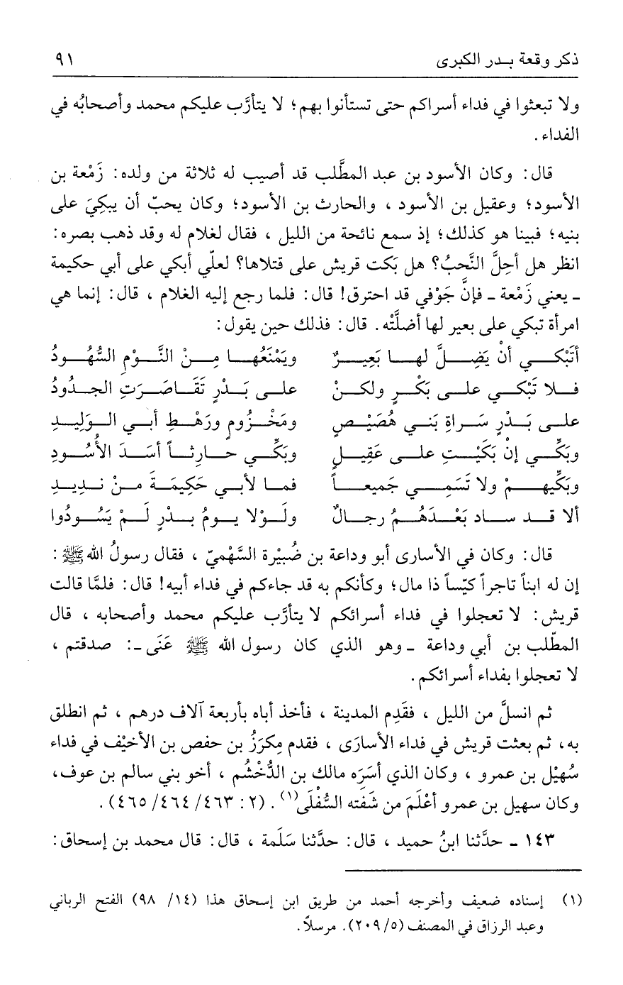 ١٤٣ - حدَّثنا ابنُ حميد، قال: حدَّثنا سَلَمة، قال: قال محمد بن إسحاق: