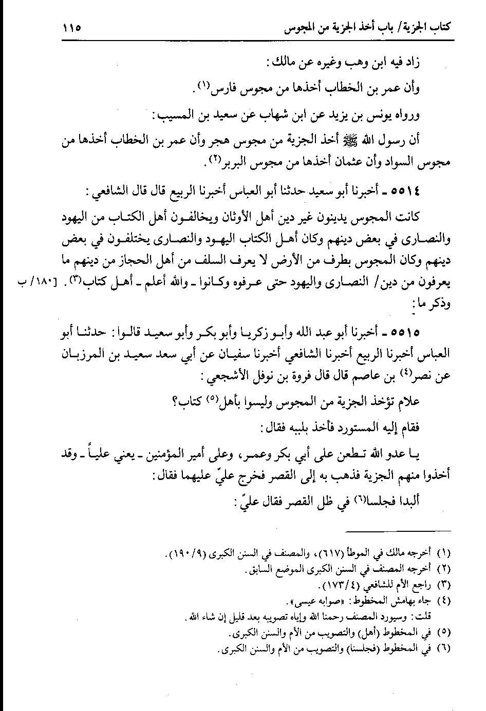 5 @زاد فيه ابن وهب وغيره عن مالك : وأن عمر بن الخطاب أخذها من مجوس فارس.