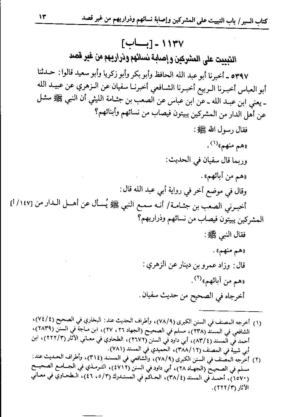 1137 - باب التبييت على المشركين وإصابة نسائهم وذراريهم من غير قصد