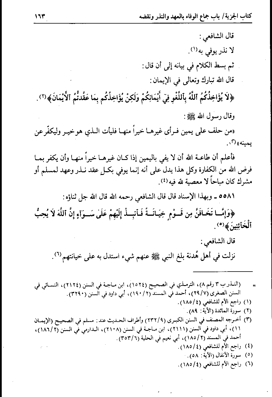 فأعلم أن طاعة الله أن لا يفي باليمين إذا كان غيرها خيراً منها وأن يكفر بما فرض الله من الكفارة وكل هذا يدل على أنه إنما يوفي بكل عقد نذر وعهد لمسلم أو مشرك كان مباحاً لا معصية لله فيه.