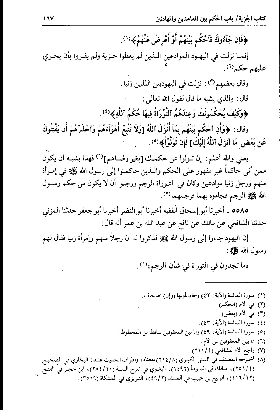 5585 - أخبرنا أبو إسحاق الفقيه أخبرنا أبو النضر أخبرنا أبو جعفر حدثنا المزني حدثنا الشافعي عن مالك عن نافع عن عبد الله بن عمر أنه قال : إن اليهود جاءوا إلى رسول الله صلى الله عليه وسلم فذكروا له أن رجلاً منهم وإمرأة زنيا فقال لهم رسول الله صلى الله عليه وسلم : ما تجدون في التوراة من شأن الرجم.