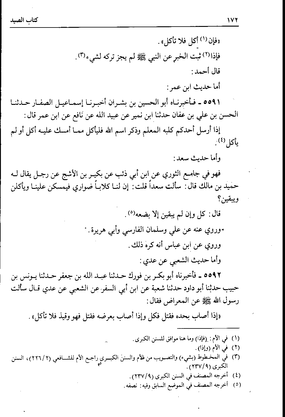 قال أحمد : أما حديث ابن عمر 5591 - فأخبرناه أبو الحسين بن بشران أخبرنا إسماعيل الصفار حدثنا الحسن بن علي عن عفان حدثنا ابن نمير عن عبيد الله عن نافع عن ابن عمر قال : إذا أرسل أحدكم كلبه المعلم وذكر اسم الله فليأكل مما أمسك عليه أكل أو لم يأكل.