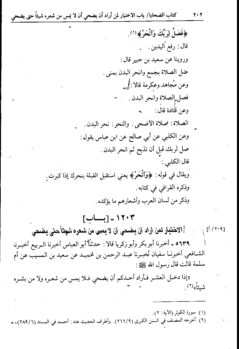 1203 - باب 209 أ الاختيار لمن أراد أن يضحي أن لا يمس من شعره شيئاً حتى يضحي