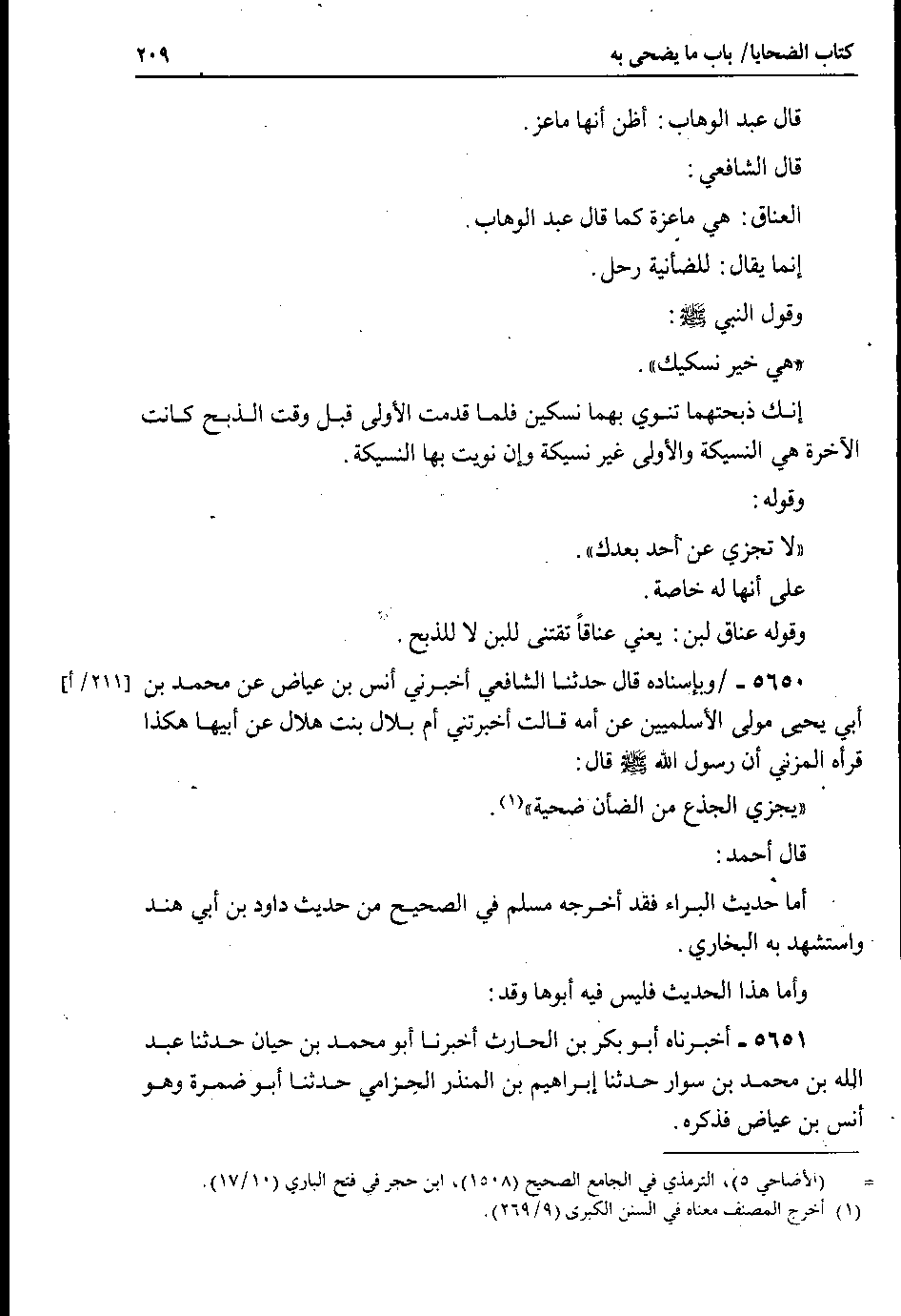 5650 - 211 أ وبإسناده قال حدثنا الشافعي أخبرني أنس بن عياض عن محمد بن أبي يحيى مولى الأسلميين عن أمه قالت أخبرتني أم بلال بنت هلال عن أبيها هكذا قرأه المزني أن رسول الله صلى الله عليه وسلم قال : يجزي الجذع من الضأن ضحية.