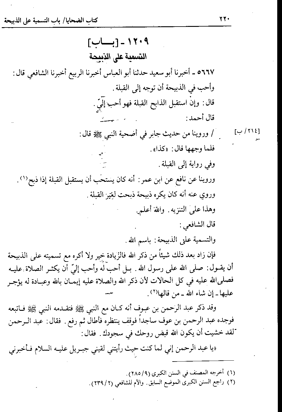 5667 - أخبرنا أبو سعيد حدثنا أبو العباس أخبرنا الربيع أخبرنا الشافعي قال : وأحب في الذبيحة أن توجه إلى القبلة.