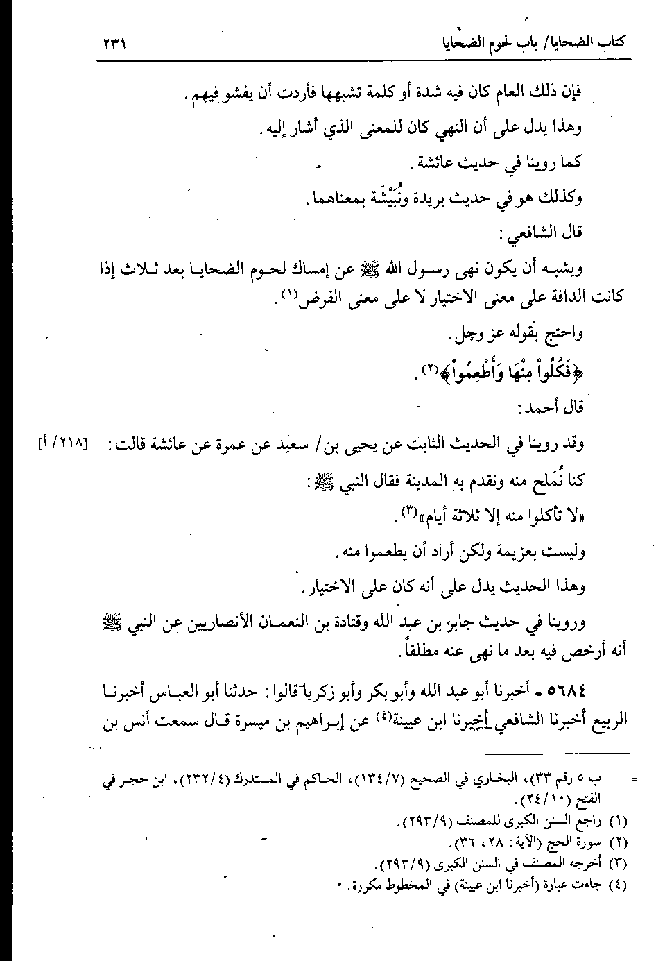 قال أحمد : وقد روينا في الحديث الثابت عن يحيى بن 218 أ سعيد عن عمرة عن عائشة قالت : كنا نُمَلح منه ونقدم به المدينة فقال النبي صلى الله عليه وسلم : لا تأكلوا منه إلا ثلاثة أيام.