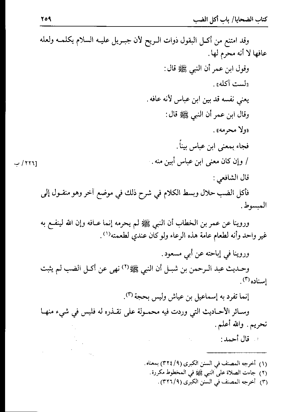 قال الشافعي : فأكل الضب حلال وبسط الكلام في شرح ذلك في موضع آخر وهو منقول إلى المبسوط.