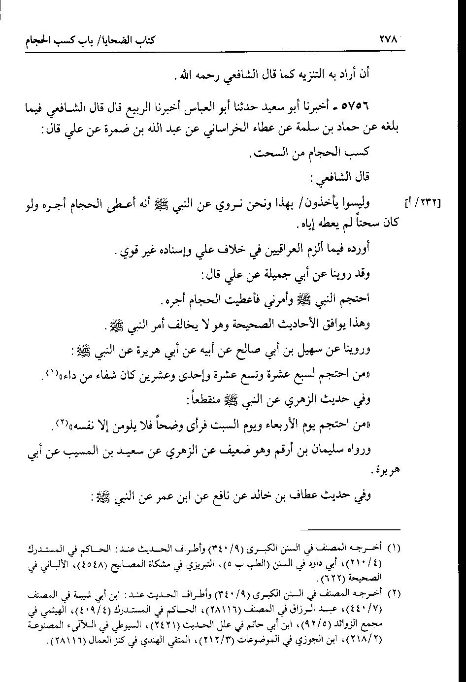 قال الشافعي : وليسوا يأخذون 232 أ بهذا ونحن نروي عن النبي صلى الله عليه وسلم أنه أعطى الحجام أجره ولو كان سحتاً لم يعطه إياه.