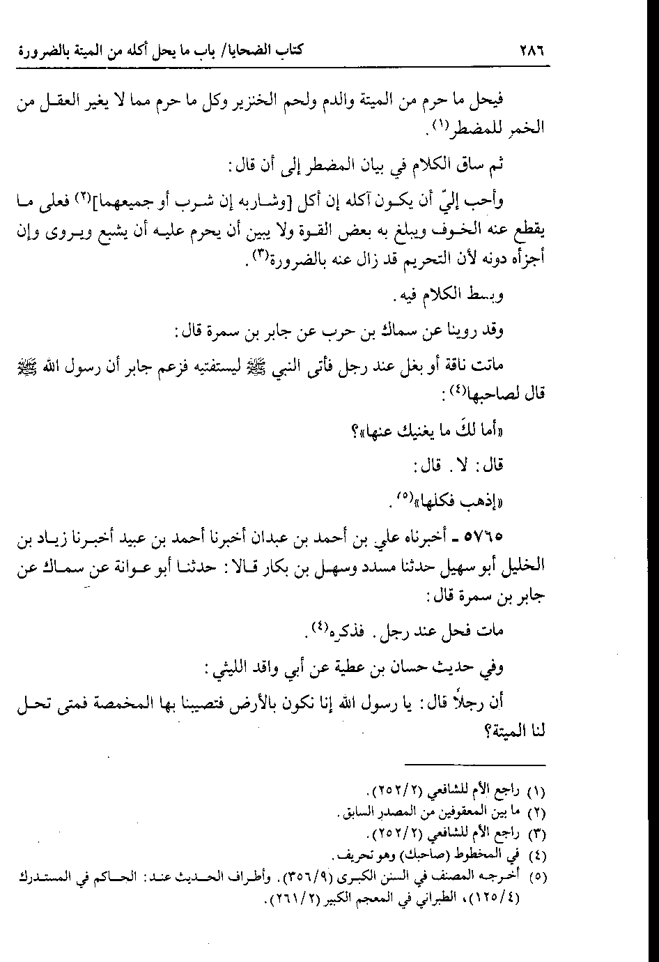 وقد روينا عن سماك بن حرب عن جابر بن سمرة قال : ماتت ناقة أو بغل عند رجل فأتى النبي صلى الله عليه وسلم ليستفتيه فزعم جابر أن رسول الله صلى الله عليه وسلم قال لصاحبها : أما لكَ ما يغنيك عنها ؟ قال : لا . قال : إذهب فكلها.