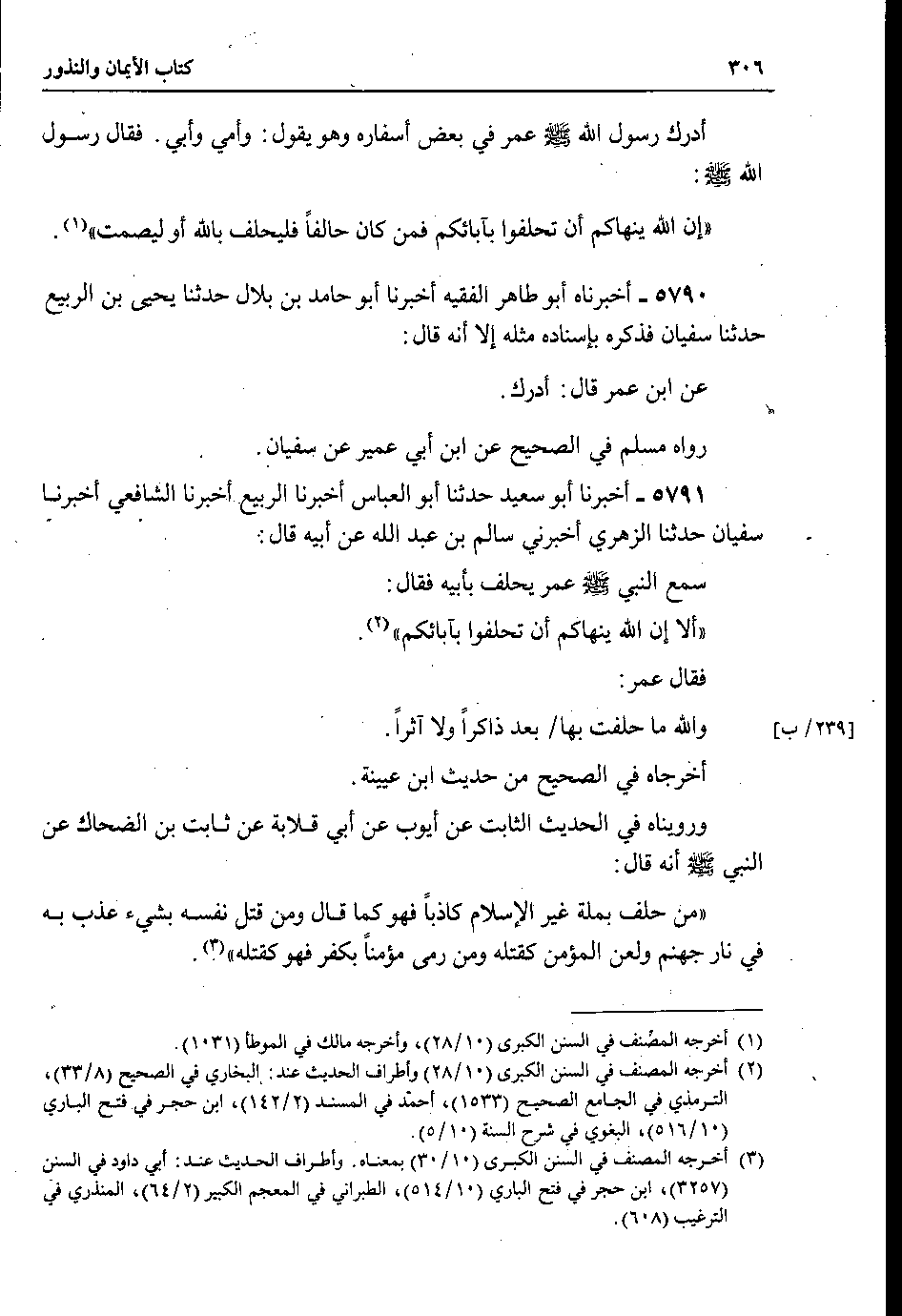 5791 - أخبرنا أبو سعيد حدثنا أبو العباس أخبرنا الربيع أخبرنا الشافعي أخبرنا سفيان حدثنا الزهري أخبرني سالم بن عبد الله عن أبيه قال : سمع النبي صلى الله عليه وسلم عمر يحلف بأبيه فقال : ألا إن الله ينهاكم أن تحلفوا بآبائكم.