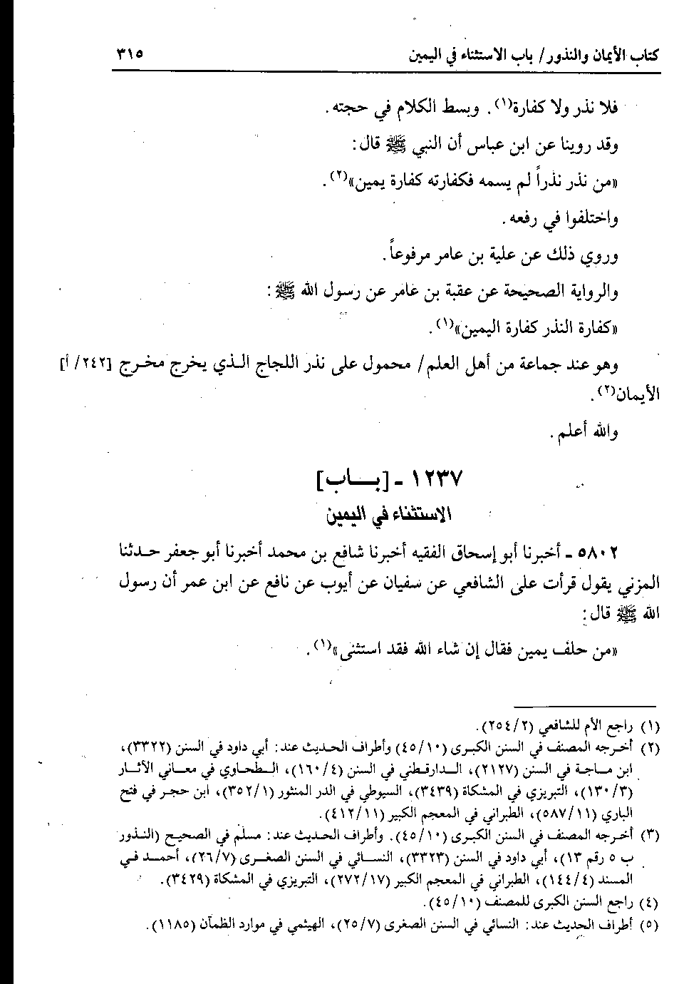 5802 - أخبرنا أبو إسحاق الفقيه أخبرنا شافع بن محمد أخبرنا أبو جعفر حدثنا المزني يقول قرأت على الشافعي عن سفيان عن أيوب عن نافع عن ابن عمر أن رسول الله صلى الله عليه وسلم قال : من حلف يمين فقال إن شاء الله فقد استثنى.