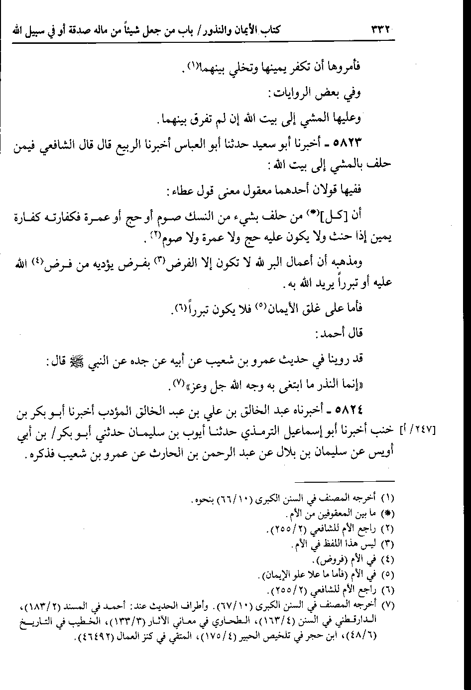 5823 - أخبرنا أبو سعيد حدثنا أبو العباس أخبرنا الربيع قال قال الشافي فيمن حلف بالمشي إلى بيت الله.