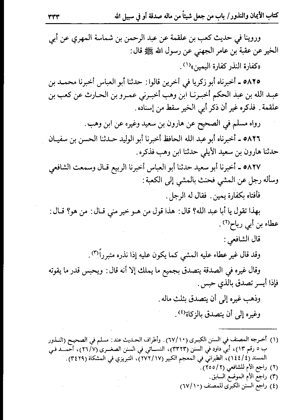 5827 - أخبرنا أبو سعيد حدثنا أبو العباس أخبرنا الربيع قال وسمعت الشافعي وسأله رجل عن المشي فحنث بالمشي إلى الكعبة : فأفتاه بكفارة يمين . فقال له الرجل.