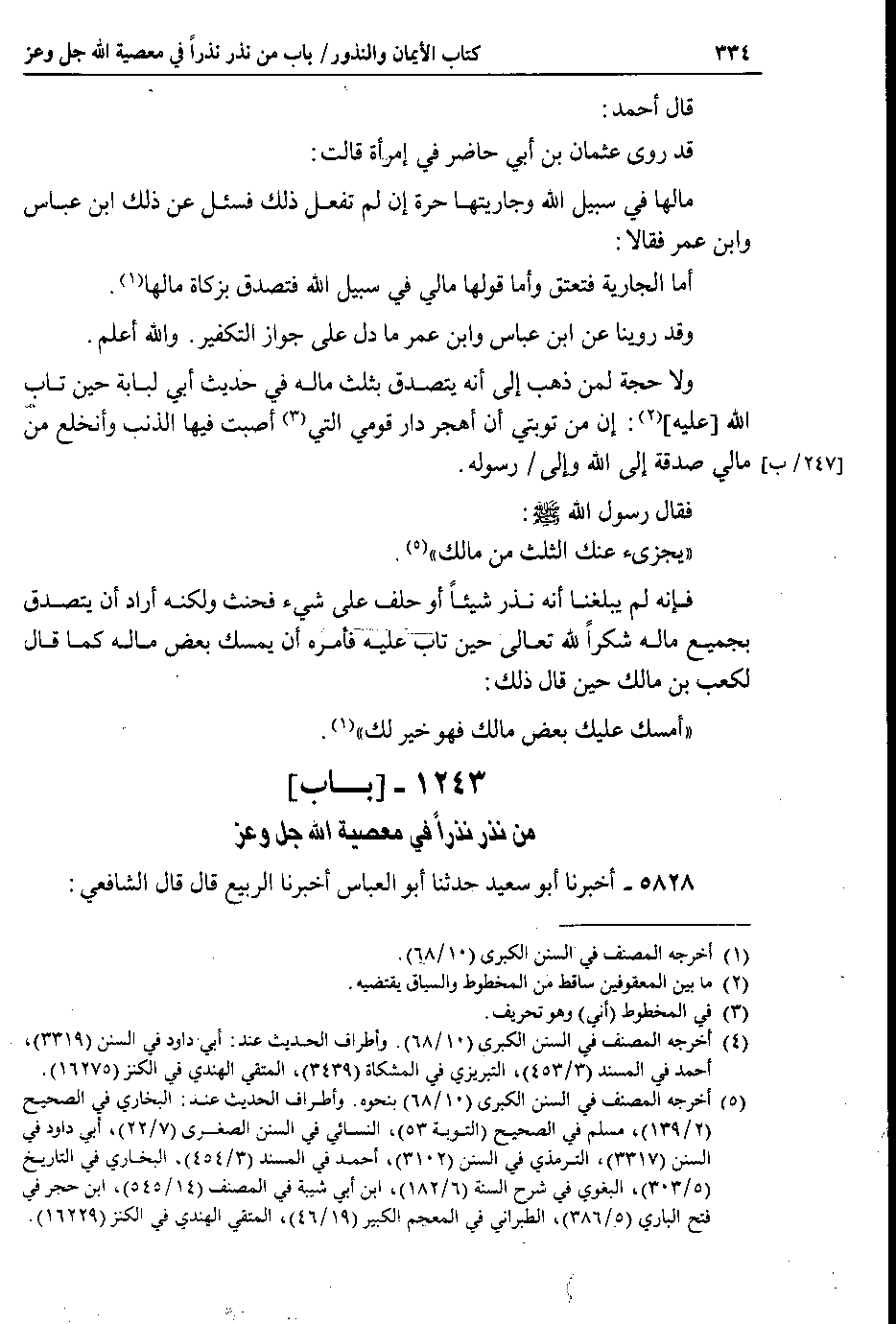 1243 - باب من نذر نذراً في معصية الله جل وعز