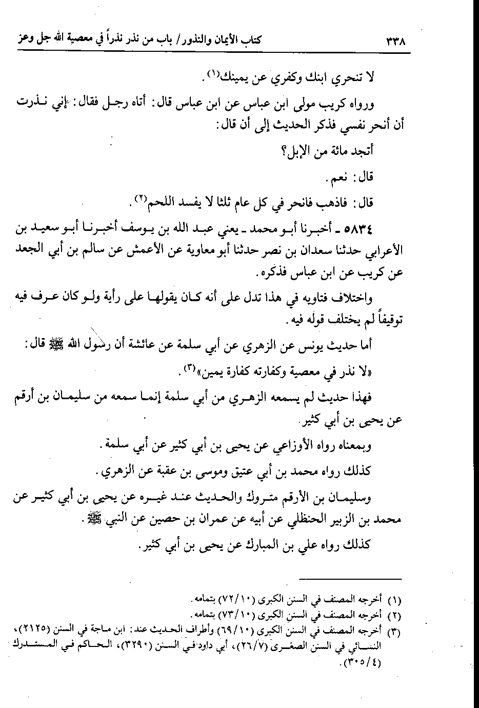 ورواه كريب مولى ابن عباس عن ابن عباس قال : أتاه رجل فقال : إني نذرت أن أنحر نفسي فذكر الحديث إلى أن قال : أتجد مِئَة من الإبل ؟ قال : نعم.