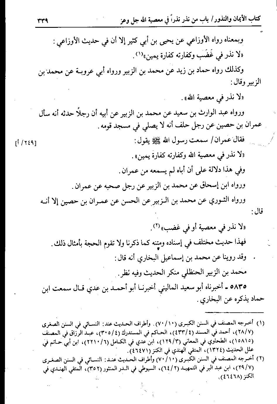 وكذلك رواه حماد بن زيد عن محمد بن الزبير ورواه أبي عروبة عن محمد بن الزبير وقال : لا نذر في معصية الله.