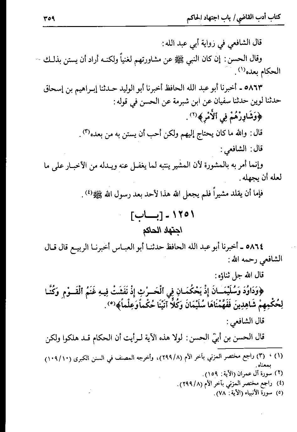 5864 - أخبرنا أبو عبد الله الحافظ حدثنا أبو العباس أخبرنا الربيع قال قال الشافعي رحمه الله قال الله جل ثناؤه : {وداود وسليمان إذ يحكمان في الحرث إذ نفشت فيه غنم القوم وكنا لحكمهم شاهدين ففهمناها سليمان وكلا آتينا حكما وعلما}.