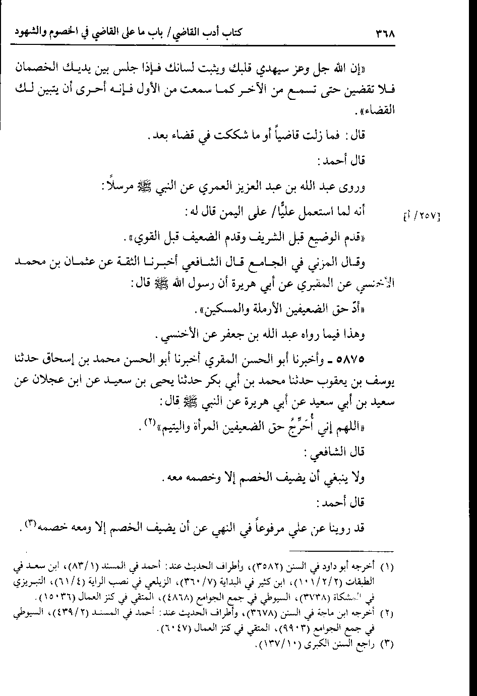 وقال المزني في الجامع قال الشافعي أخبرنا الثقة عن عثمان بن محمد الأخنسي عن المقبري عن أبي هريرة أن رسول الله صلى الله عليه وسلم قال : أدّ حق الضعيفين الأرملة والمسكين.