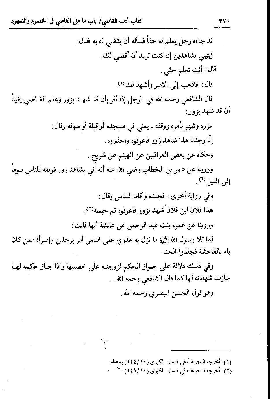 قد جاءه رجل يعلم له حقاً فسأله أن يقضي له به فقال : إيتيني بشاهدين إن كنت تريد أن أقضي لك.