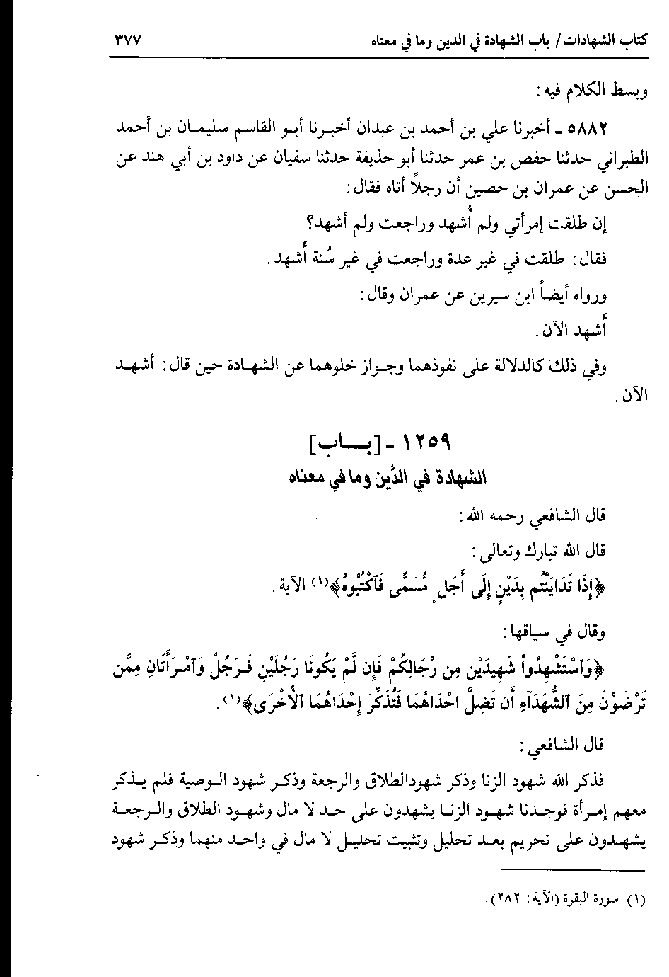 1259 - باب الشهادة في الدِّين وما في معناه