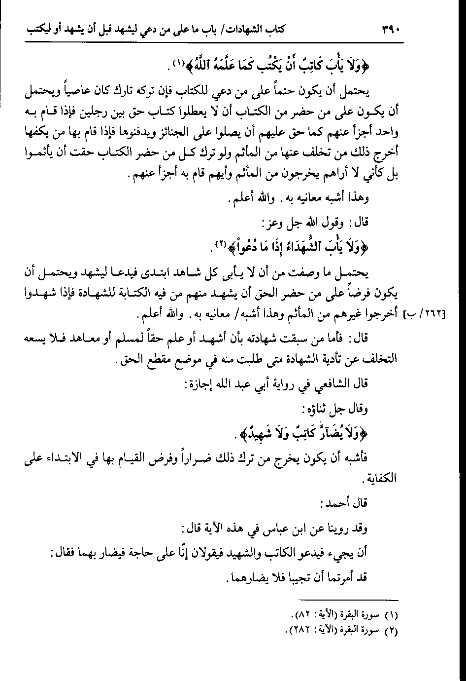 قال أحمد : وقد روينا عن ابن عباس في هذه الآية قال : أن يجيء فيدعو الكاتب والشهيد فيقولان إنّا على حاجة فيضار بهما فقال : قد أمرتما أن تجيبا فلا يضارهما.