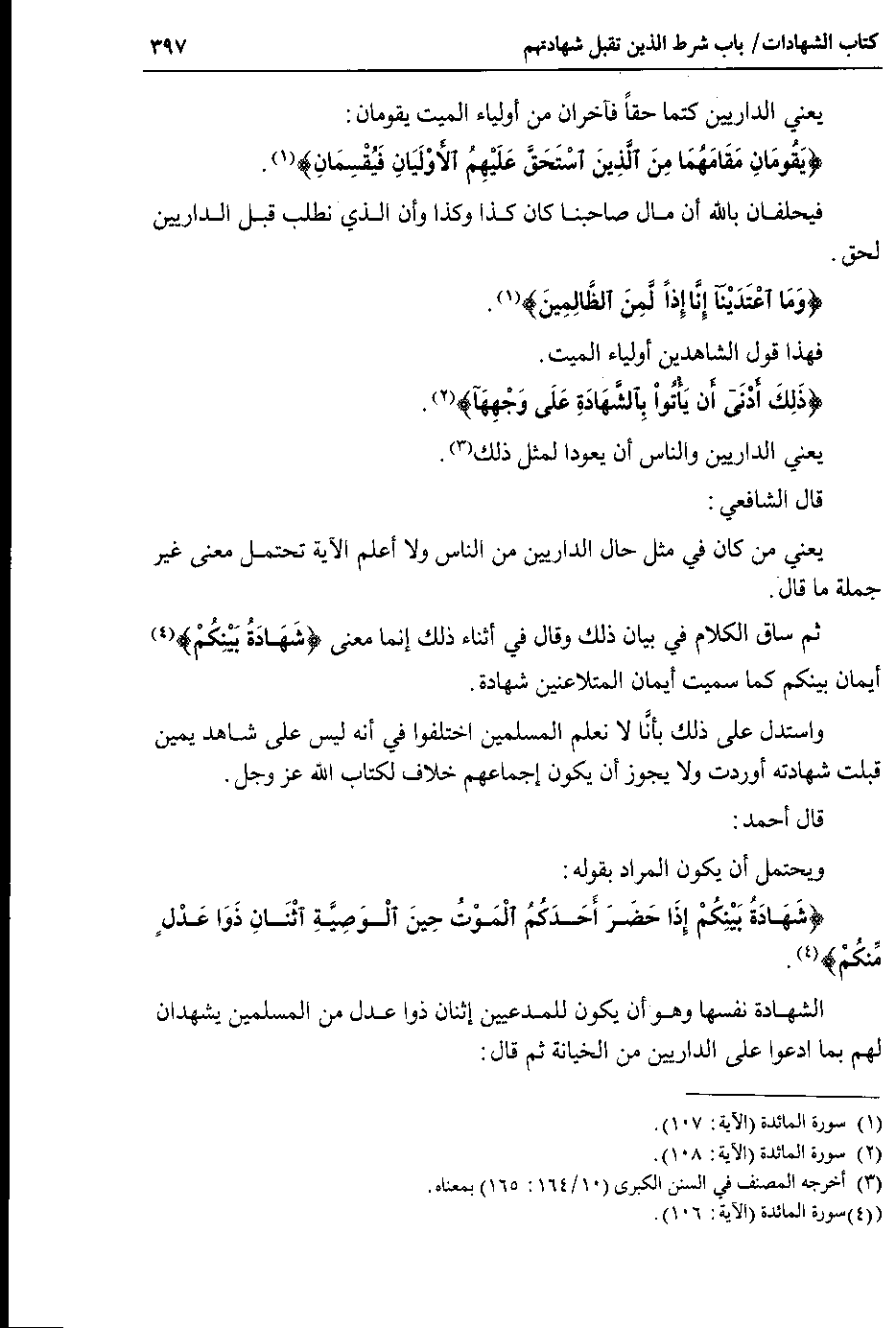 ثم ساق الكلام في بيان ذلك وقال في أثناء إنما معنى {شهادة بينكم} أيمان بينكم كما سميت أيمان المتلاعنين شهادة.