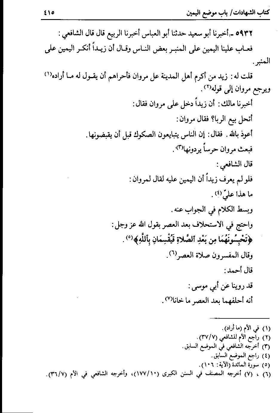 5 @5933 - أخبرنا أبو سعيد حدثنا أبو العباس أخبرنا الربيع قال قال الشافعي : فعاب علينا اليمين على المنبر بعض الناس وقال أن زيداً أنكر اليمين على المنبر.