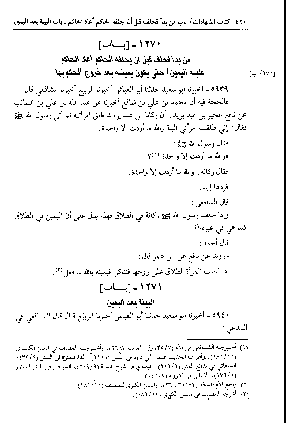 1270 - باب من بدأ فحلف قبل أن يحلفه الحاكم أعاد الحاكم عليه اليمين 270 ب حتى يكون يمينه بعد خروج الحكم بها