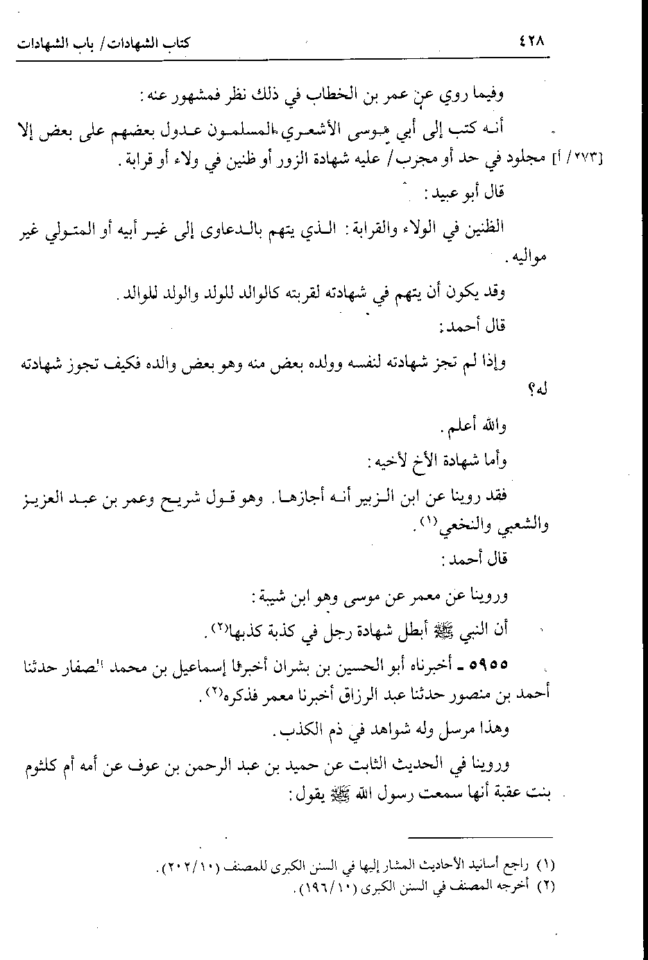 وفيما روي عن عمر بن الخطاب في ذلك نظر فمشهور عنه : أنه كتب إلى أبي موسى الأشعري المسلمون عدول بعضهم على بعض إلا مجلود في حدث أو مجرب 273 أ عليه شهادة الزور أو ظنين في ولاء أو قرابة.