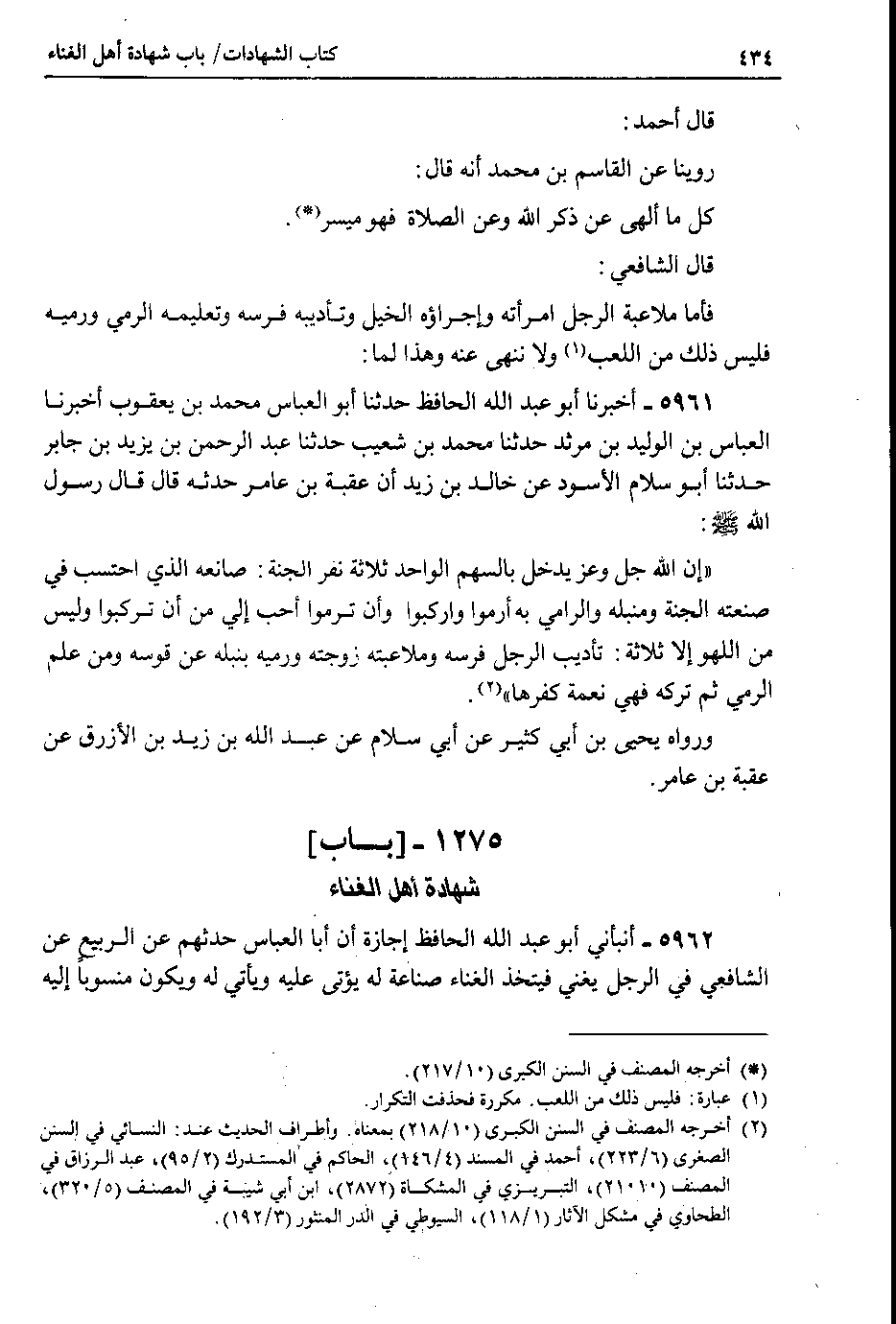 1275 - باب شهادة أهل الغناء