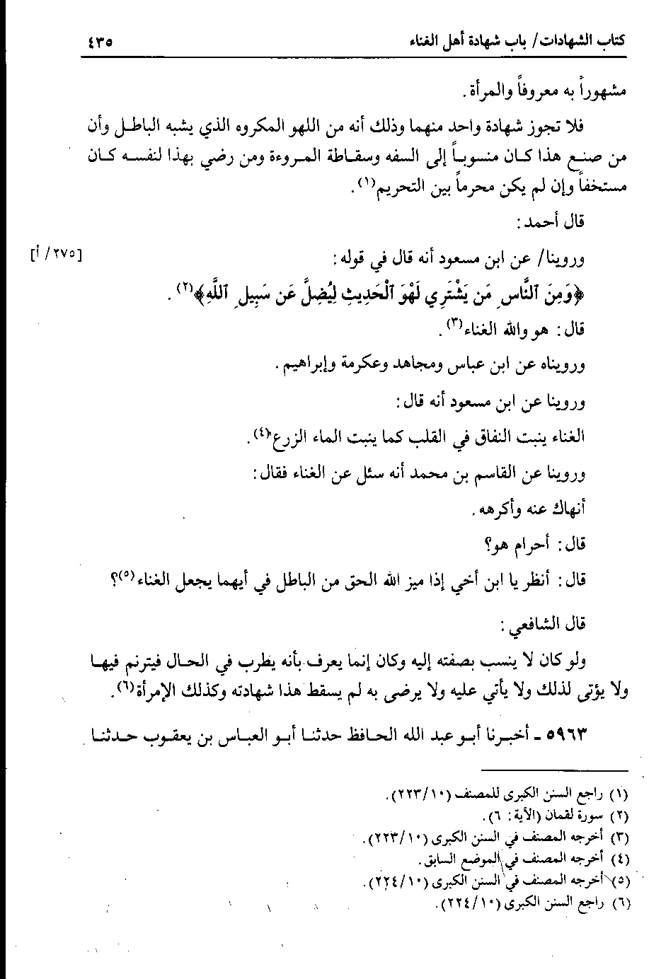 قال أحمد : وروينا 275 أ عن ابن مسعود أنه قال في قوله : {ومن الناس من يشتري لهو الحديث ليضل عن سبيل الله}.