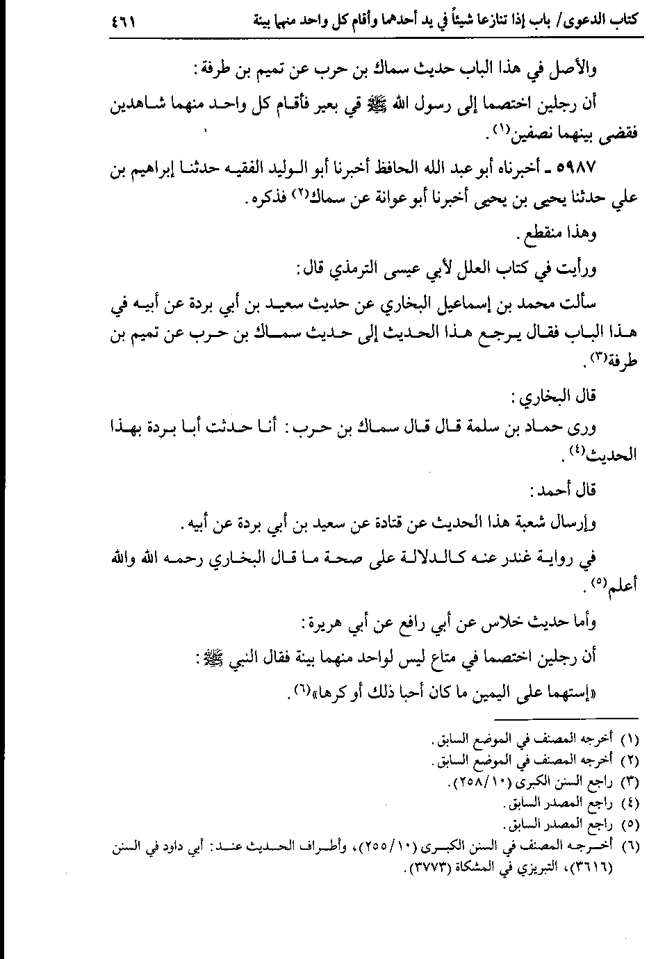 والأصل في هذا الباب حديث سماك بن حرب عن تميم بن طرفة : أن رجلين اختصما إلى رسول الله صلى الله عليه وسلم في بعير فأقام كل واحد منهما شاهدين فقضى بينهما نصفين.