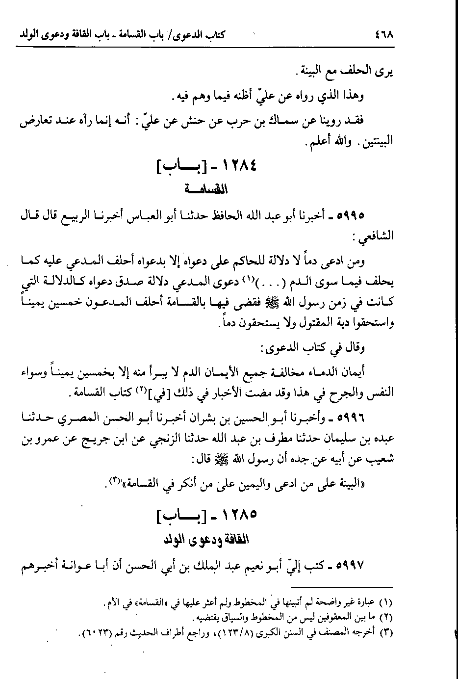 5995 - أخبرنا أبو عبد الله الحافظ حدثنا أبو العباس أخبرنا الربيع قال قال الشافعي : ومن ادعى دماً لا دلالة للحاكم على دعواه إلا بدعواه أحلف المدعي عليه كما يحلف فيما سوى الدم ( . . . ) دعوى المدعي دلالة صدق دعواه كالدلالة التي كانت في زمن رسول الله صلى الله عليه وسلم فقضى فيها بالقسامة أحلف المدعون خمسين يميناً واستحقوا دية المقتول ولا يستحقون دماً.