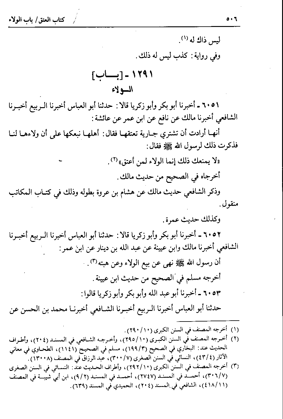 6052 - أخبرنا أبو بكر وأبو زكريا قالا : حدثنا أبو العباس أخبرنا الربيع أخبرنا الشافعي أخبرنا مالك وابن عيينة عن عبد الله بن دينار عن ابن عمر : أن رسول الله صلى الله عليه وسلم نهى عن بيع الولاء وعن هبته.