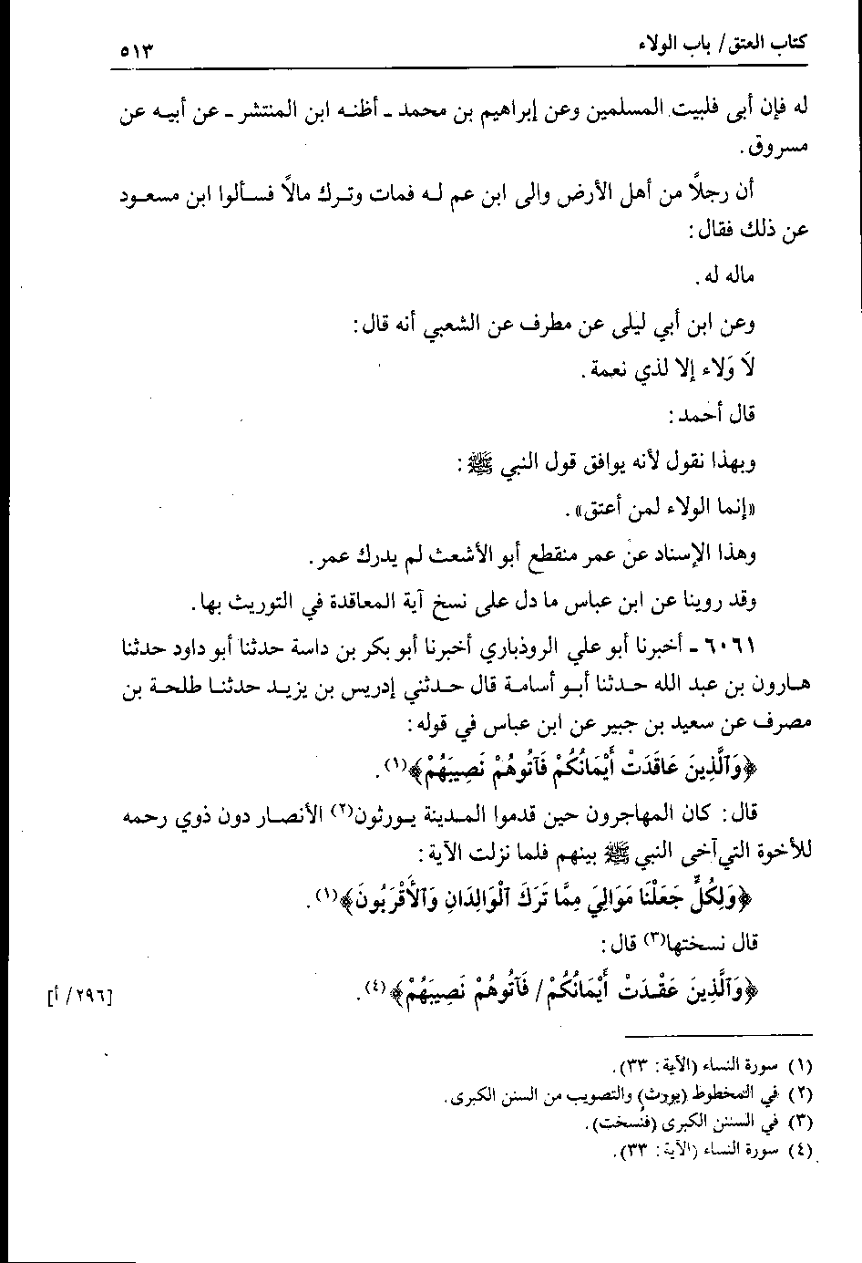 6061 - أخبرنا أبو علي الروذباري أخبرنا أبو بكر بن داسة حدثنا أبو داود حدثنا هارون بن عبد الله حدثنا أبو أسامة قال حدثني إدريس بن يزيد حدثنا طلحة بن مصرف عن سعيد بن جبير عن ابن عباس في قوله : {وَالَّذِينَ عَاقَدَتْ أَيْمَانُكُمْ فَاتُوهُمْ نَصِيبَهُمْ}.