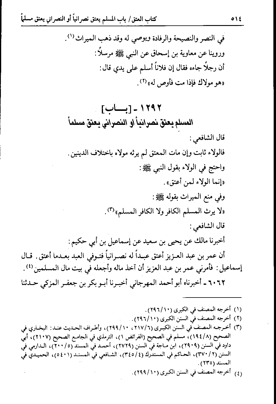 1292 - باب المسلم يعتق نصرانياً أو النصراني يعتق مسلماً