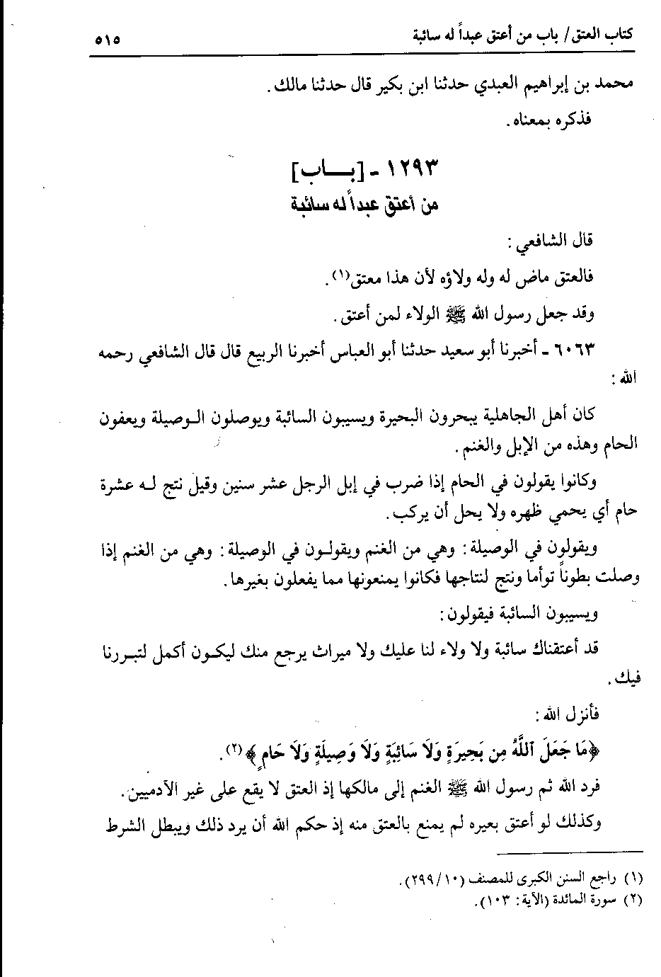 6063 - أخبرنا أبو سعيد حدثنا أبو العباس أخبرنا الربيع قال قال الشافعي رحمه الله : كان أهل الجاهلية يبحرون البحيرة ويسيبون السائبة ويوصلون الوصيلة ويعفون الحام وهذه من الإبل والغنم.