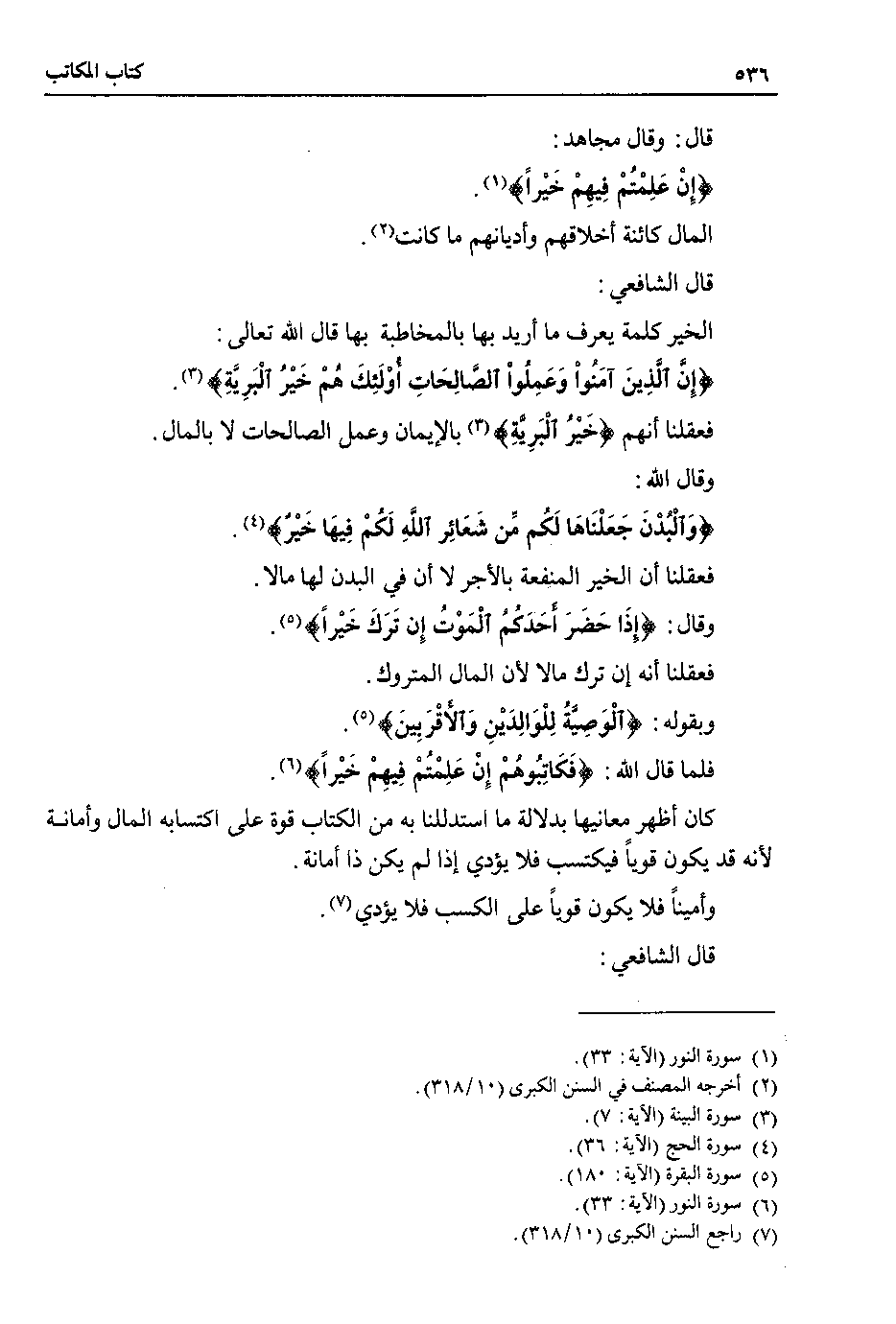 فلما قال الله : {فكاتبوهم إن علمتم فيهم خيرا}.