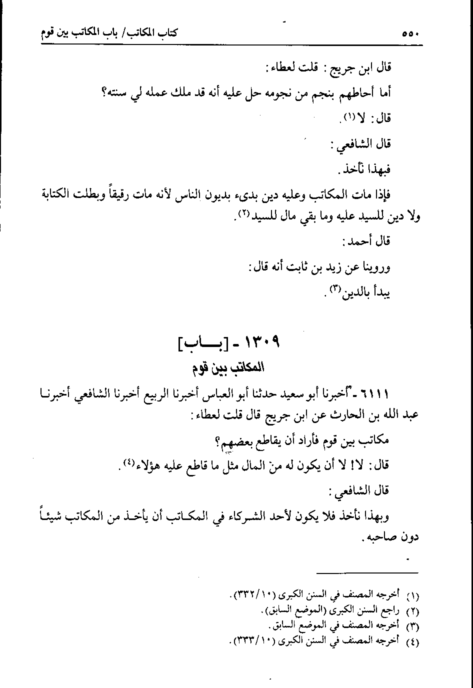 6111 - أخبرنا أبو سعيد حدثنا أبو العباس أخبرنا الربيع أخبرنا الشافعي أخبرنا عبد الله بن الحارث عن ابن جريج قال قلت لعطاء : مكاتب بين قوم فأراد أن يقاطع بعضهم ؟ قال : لا ! لا أن يكون له من المال مثل ما قاطع عليه هؤلاء.