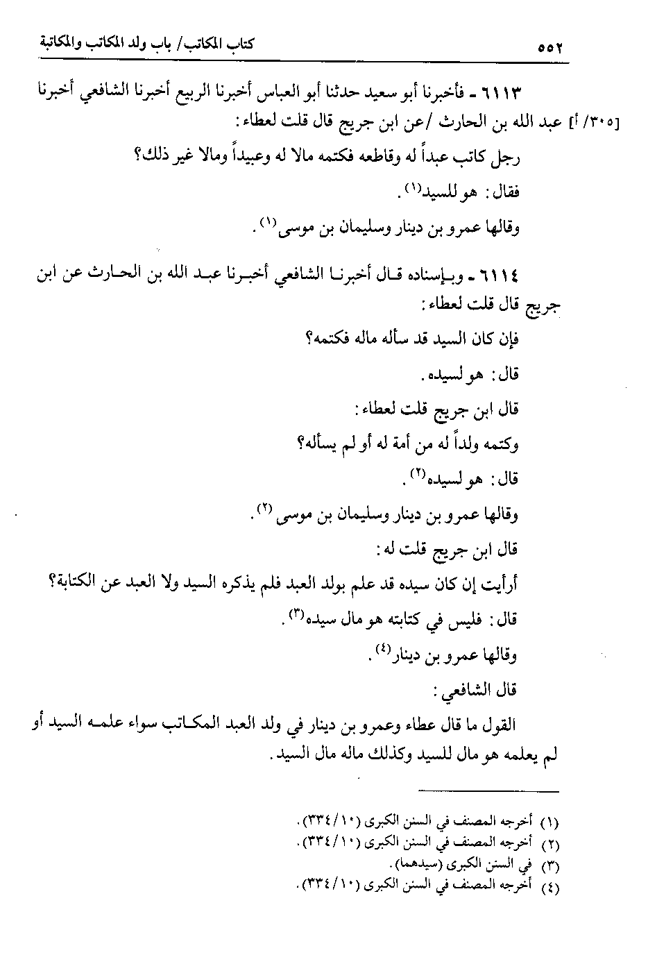 6113 - فأخبرنا أبو سعيد حدثنا أبو العباس أخبرنا الربيع أخبرنا الشافعي أخبرنا عبد الله بن الحارث 305 أ عن ابن جريج قال قلت لعطاء : رجل كاتب عبداً له وقاطعه فكتمه مالا له وعبيداً ومالا غير ذلك ؟ فقال : هو للسيد.