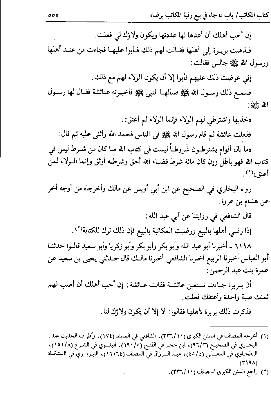 6118 - أخبرنا أبو عبد الله وأبو بكر وأبو بكر وأبو زكريا وأبو سعيد قالوا حدثنا أبو العباس أخبرنا الربيع أخبرنا الشافعي أخبرنا مالك قال حدثني يحيى بن سعيد عن عمرة بنت عبد الرحمن : أن بريرة جاءت تستعين عائشة فقال عائشة : إن أحب أهلك أن أصب لهم ثمنك صبة واحدة وأعتقك فعلت.