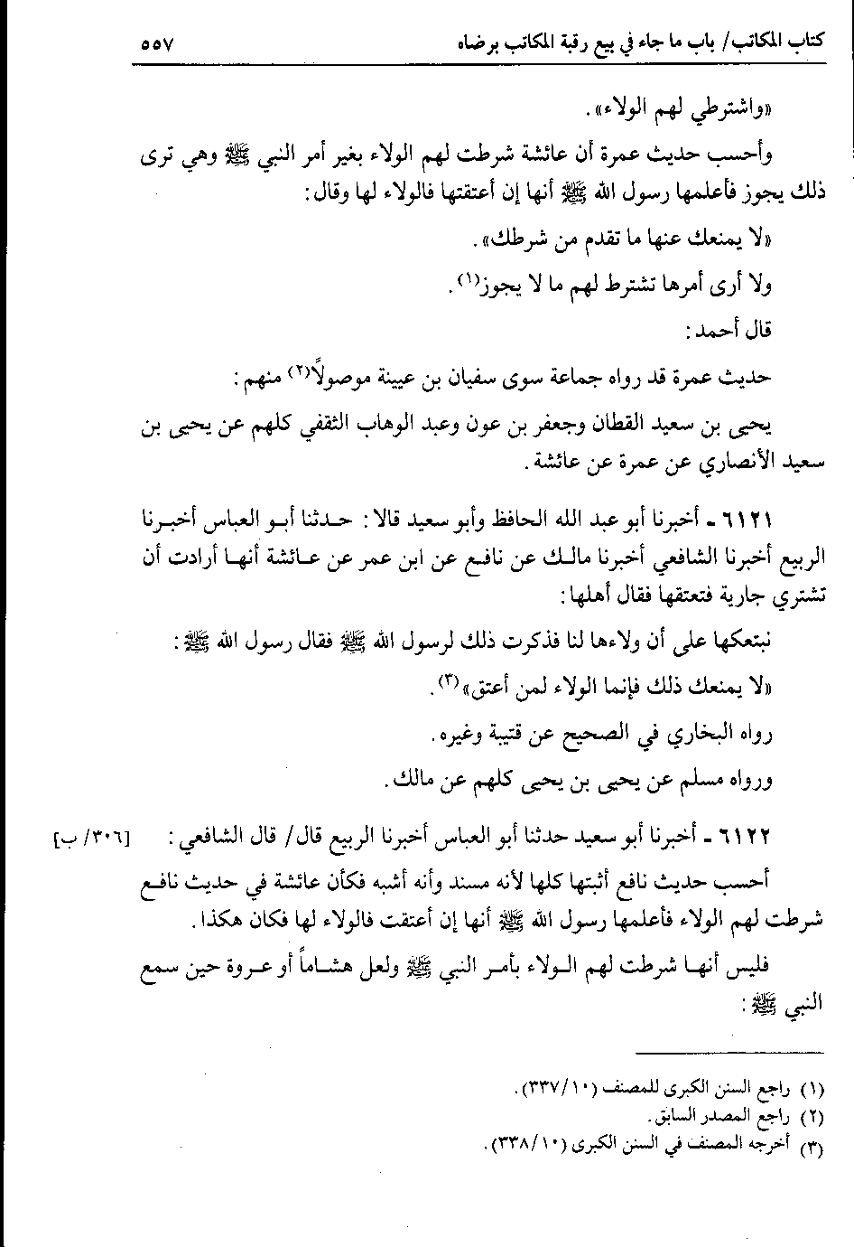 6122 - أخبرنا أبو سعيد حدثنا أبو العباس أخبرنا الربيع قال 306 ب قال الشافعي : أحسب حديث نافع أثبتها كلها لأنه مسند وأنه أشبه فكأن عائشة في حديث نافع شرطت لهم الولاء فأعلمها رسول الله صلى الله عليه وسلم أنها إن أعتقت فالولاء لها فكان هكذا.