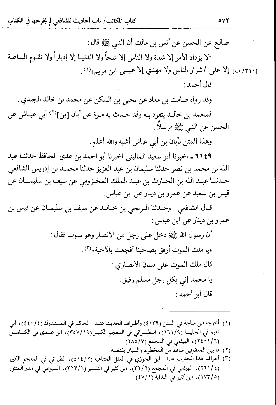 6149 - أخبرنا أبو سعيد الماليني أخبرنا أبو أحمد بن عدي الحافظ حدثنا عبد الله بن محمد بن نصر حدثنا سليمان بن عبد العزيز حدثنا محمد بن إدريس الشافعي حدثنا عبد الله بن الحارث بن عبد الملك المخزومي عن سيف بن سليمان عن قيس بن سعيد عن عمرو بن دينار عن ابن عباس.